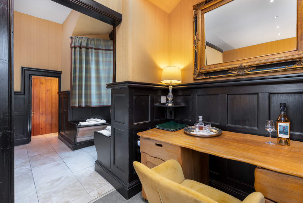 The Tower Room Deluxe is situated in the original Castle building. Developed in the main tower, which forms the iconic front of Dornoch Castle, this room combines historic character with modern comfort.